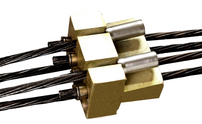 (固定端錨具)規格型號表示為:JYM15-N(YMP15-N)或JYM13-N(YMP13-N);適用于構件端部設計應力大或端部空間受到限制的 情況(Condition),它使用擠壓機將擠壓套壓結在鋼絞線上的 一種握裹式錨具,它預埋在混凝土內,按需要排布,混凝土凝固到設計強度(strength)后,在進行張拉。